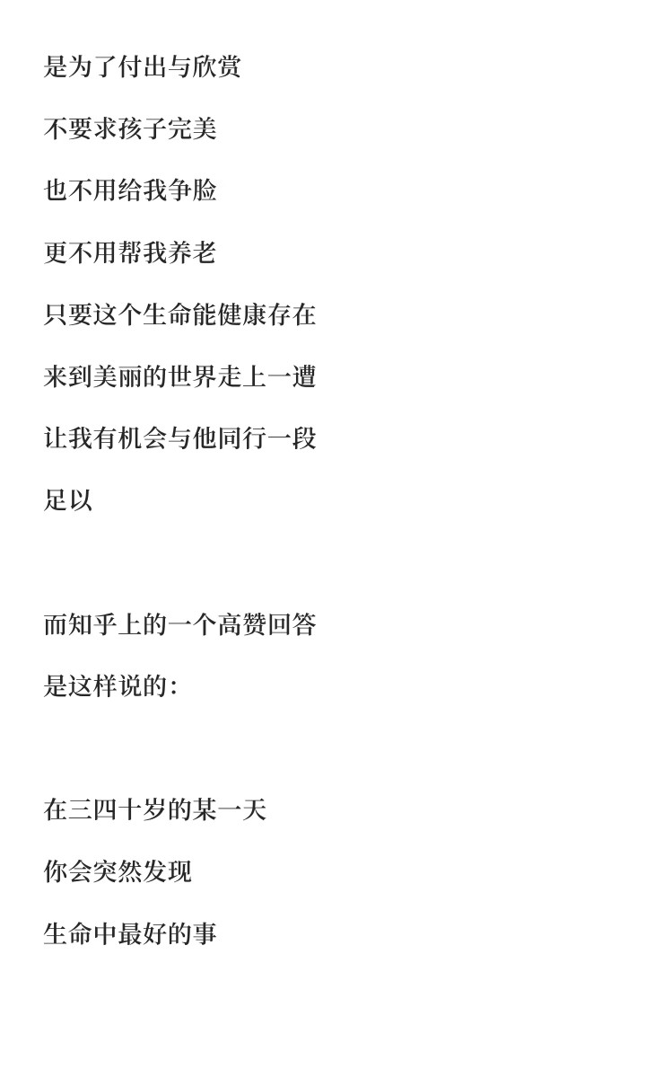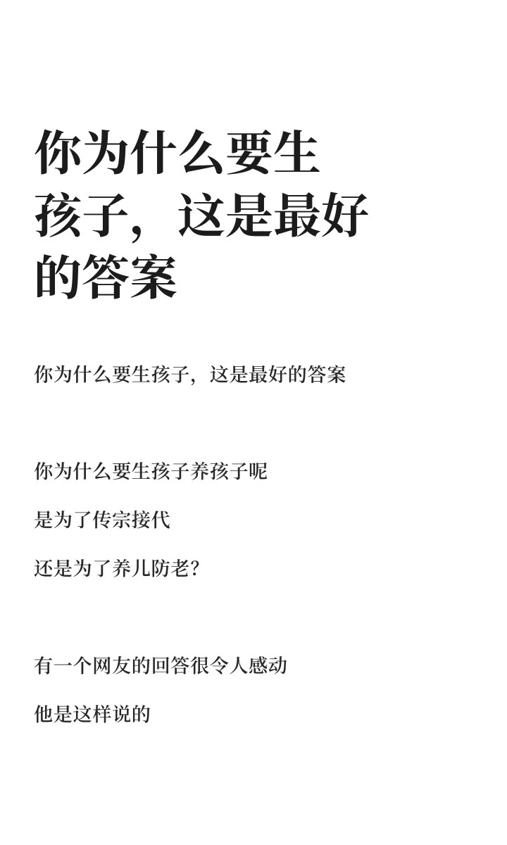 不是为了传宗接代,不是为了养儿防老,以致不是因为“到了该生的年龄”。